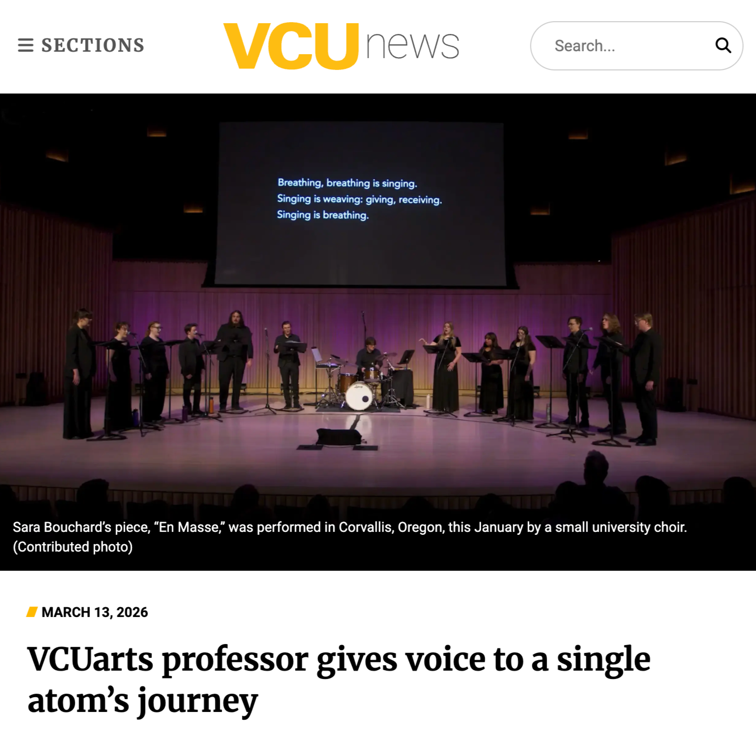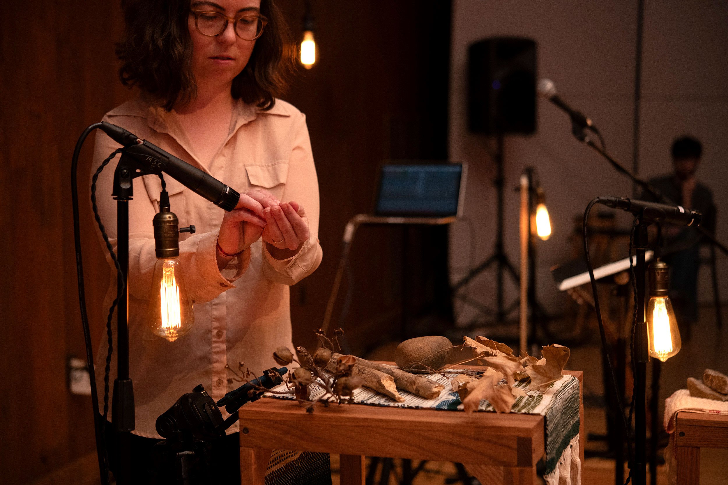Sara Bouchard is a multidisciplinary artist and composer who uses sound, installation, performance and creative coding to interweave song, story and the landscape. She has exhibited and performed internationally, including at The Aldrich Contemporary Art Museum (CT), The Center for Book Arts (NYC), ERES Foundation (Munich, Germany), The International Conference for Live Coding (Utrecht, Netherlands) and Third Practice Electroacoustic Music Festival (VA). She earned her MFA from VCUarts 2019 and currently teaches Sound in VCUarts' Department of Kinetic Imaging.
