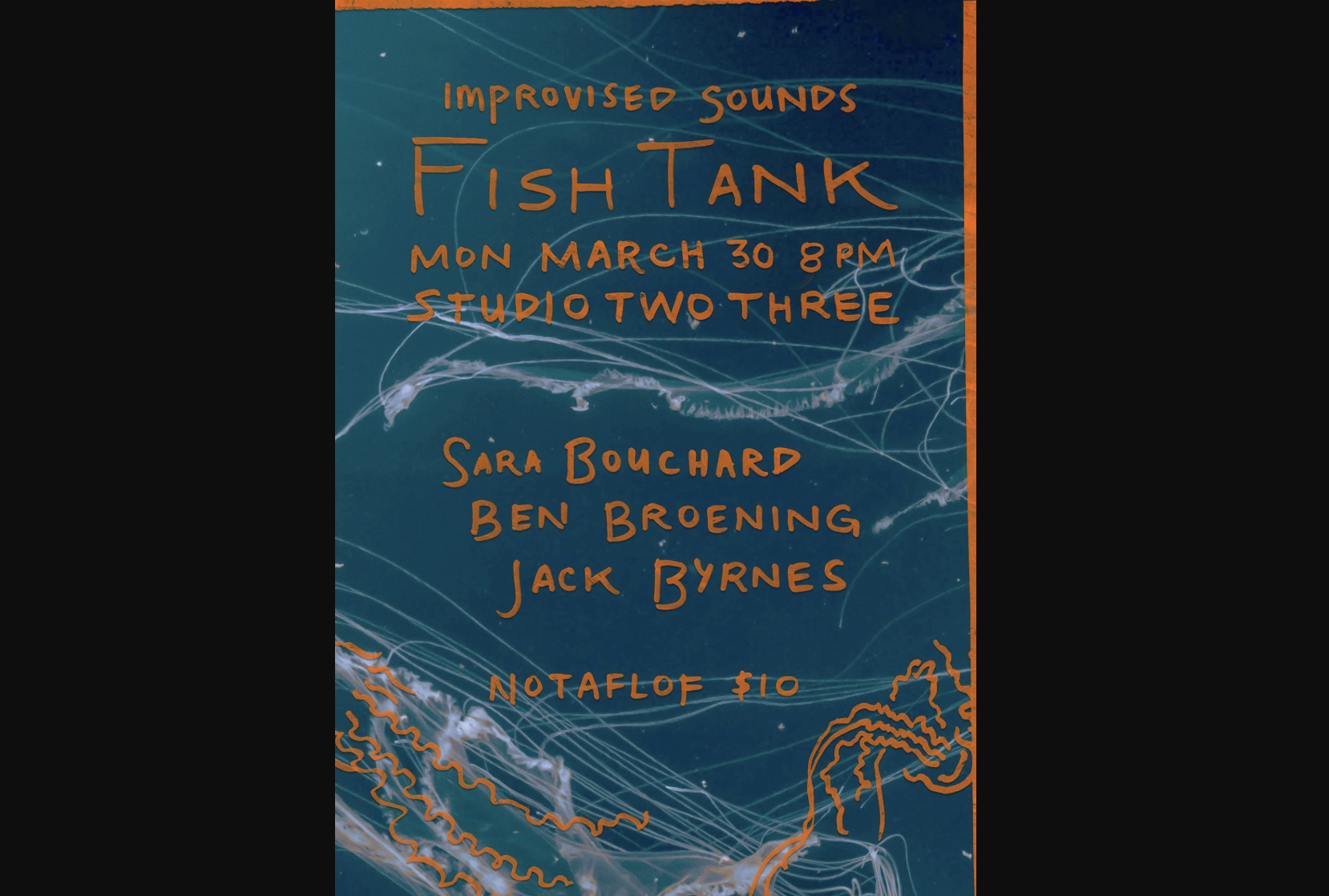 Sara will be performing as part of Alan Biller's improvised sounds series Fishtank at Studio Two Three in Richmond, VA, Monday March 30th at 8 PM. The performance also features sets from University of Richmond composer and modular synth fiend Ben Broening and bassist Jack Byrnes. As is customary with Fishtank, all three performers will collaborate on an improvised group set at the end. It's going to be a blast!